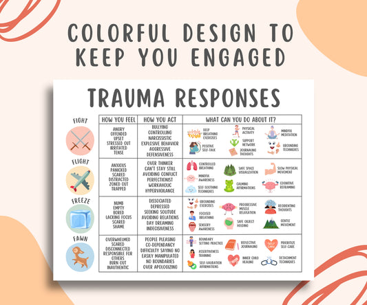 Fight, Flight, Freeze, Fawn Trauma Responses Worksheets